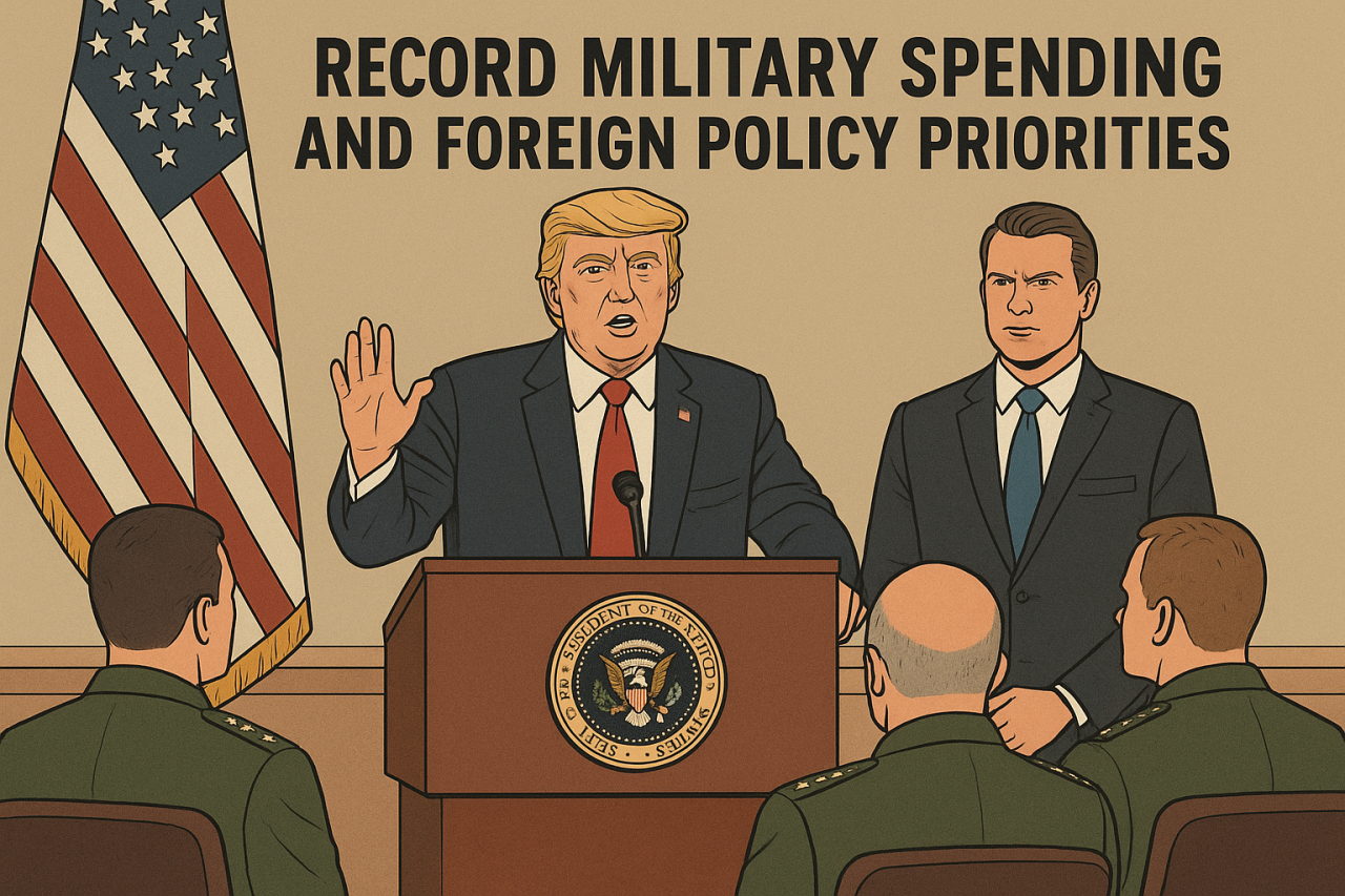 United States President Donald Trump on Tuesday delivered a wide-ranging address to senior military leaders, announcing record defence spending and outlining his foreign policy priorities.